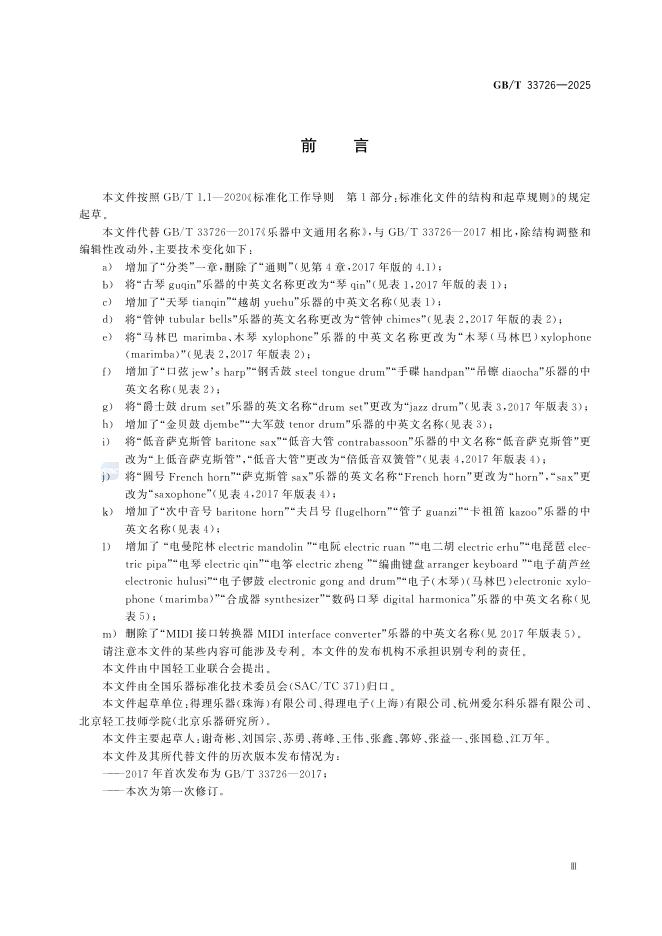 GB/T 33726-2025 乐器中文通用名称