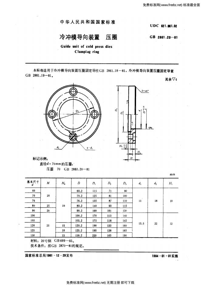 GB/T 2861.20-1981 冷冲模导向装置 压圈