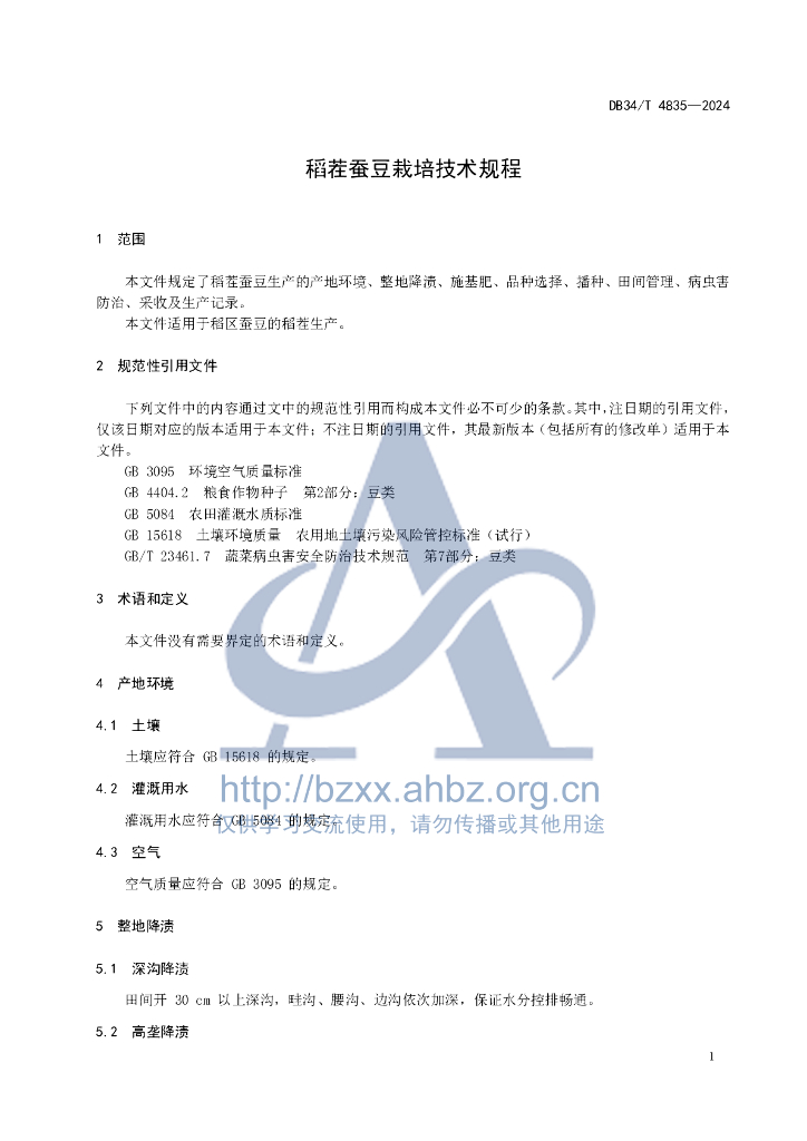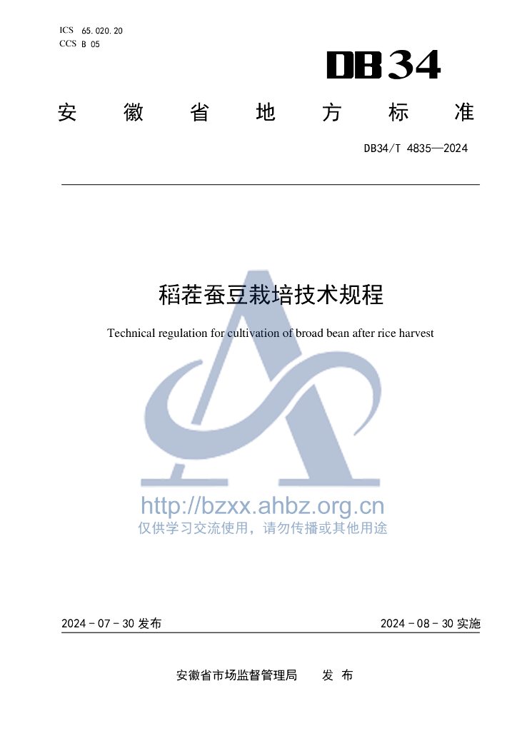 DB34/T 4835-2024 稻茬蚕豆栽培技术规程