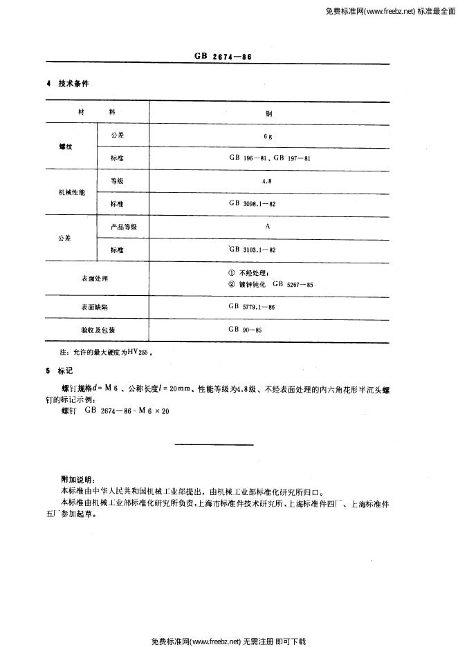 GB/T 2674-1986 内六角花形半沉头螺钉
