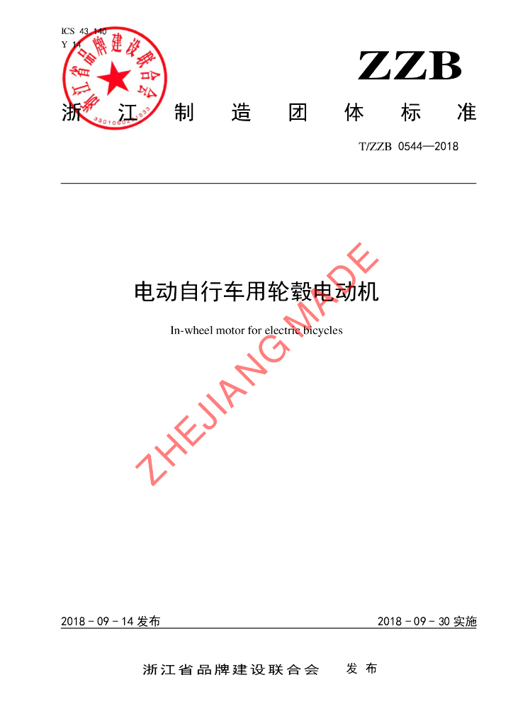 温岭市九洲电机制造有限公司、九洲新能源有限公司、台州市质量技术监督检测研究院、浙江绿驹车业有限公司、浙江省机械工业情报研究所