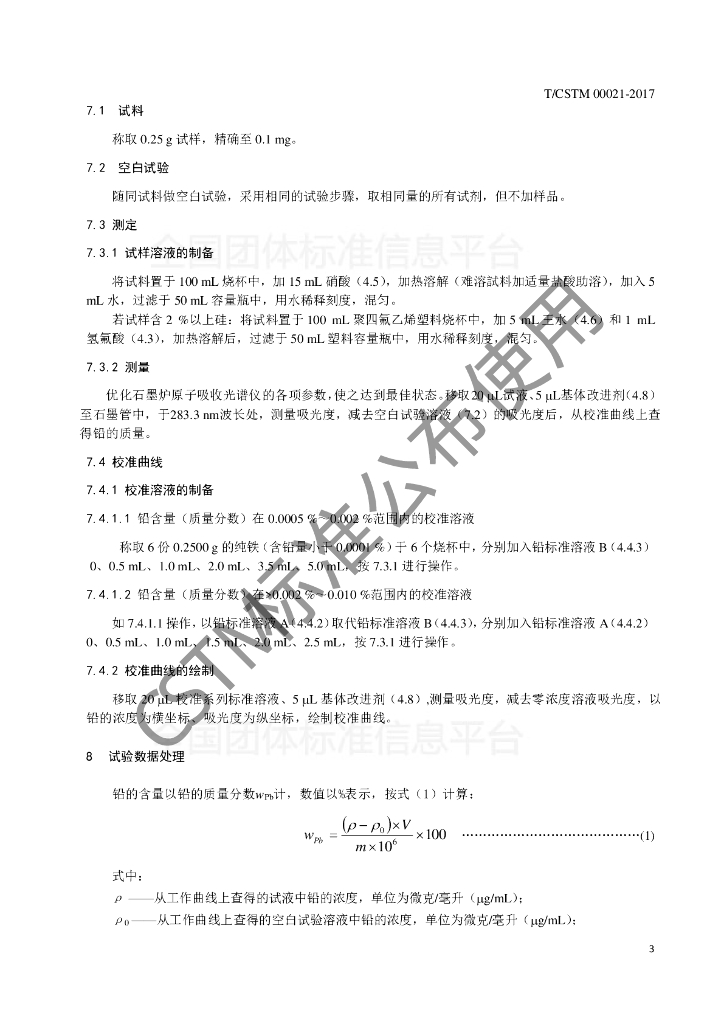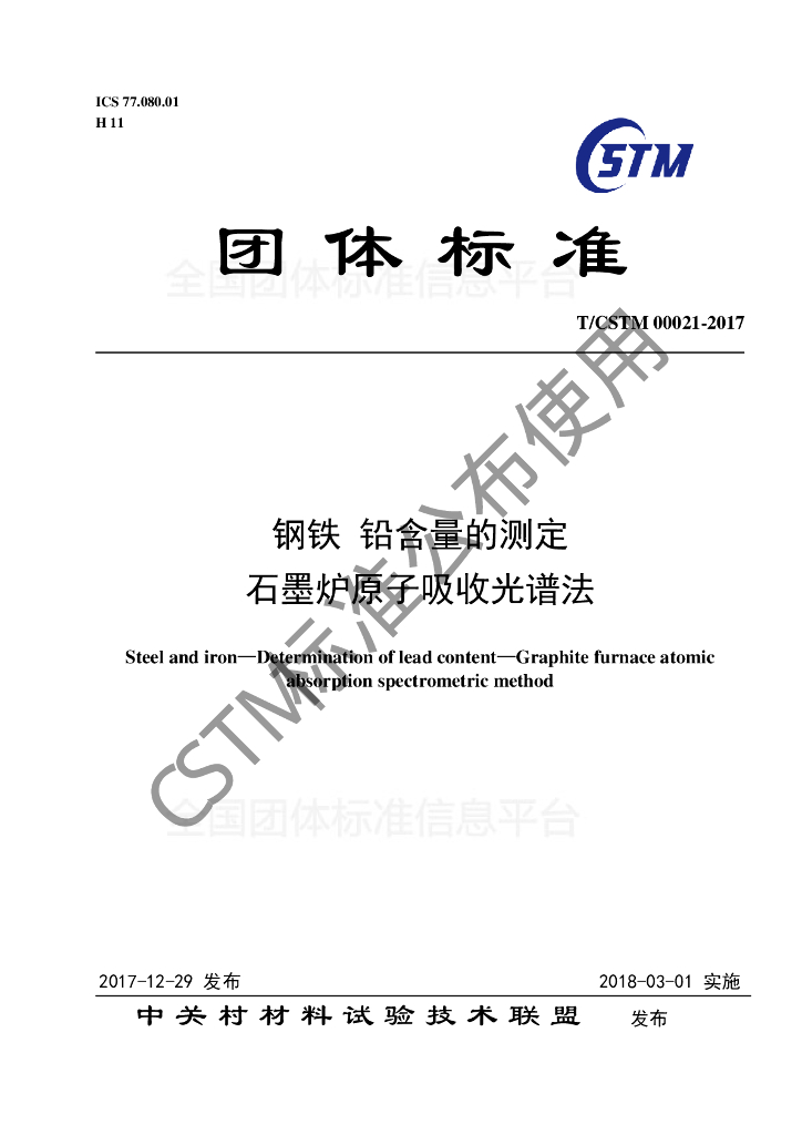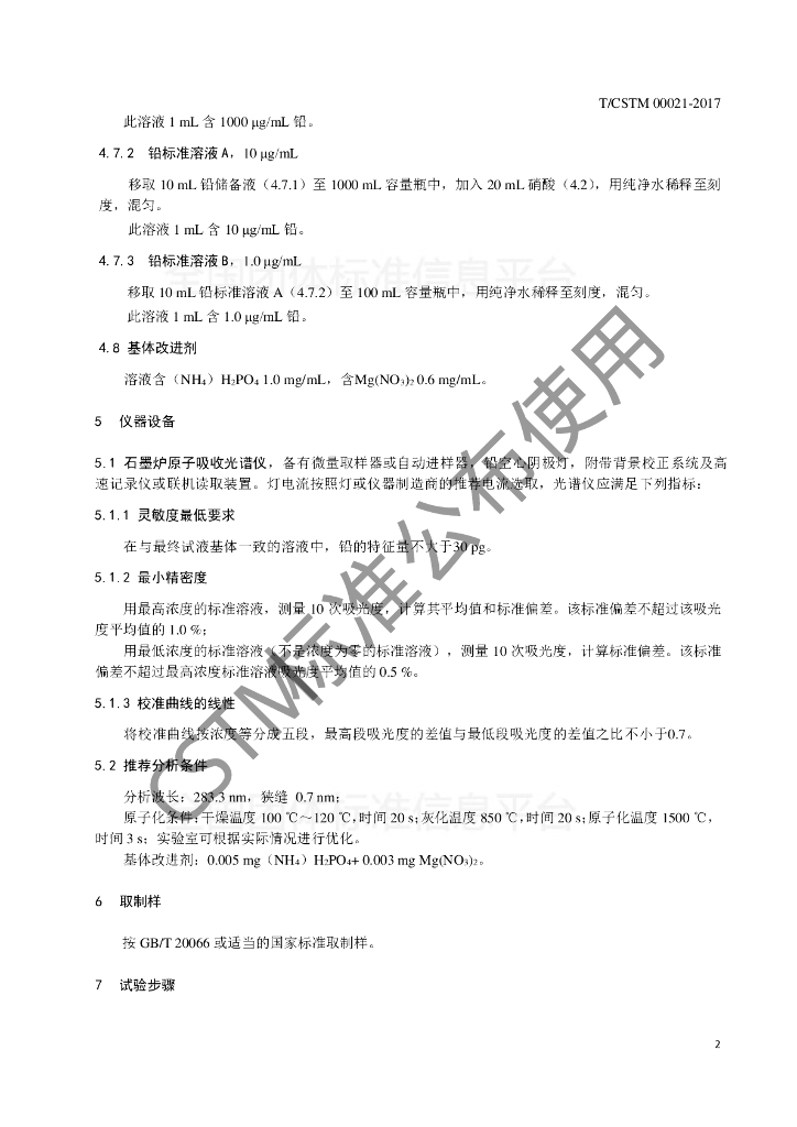 T/CSTM 00021-2017 钢铁及合金 铅含量的测定 石墨炉原子吸收光谱法