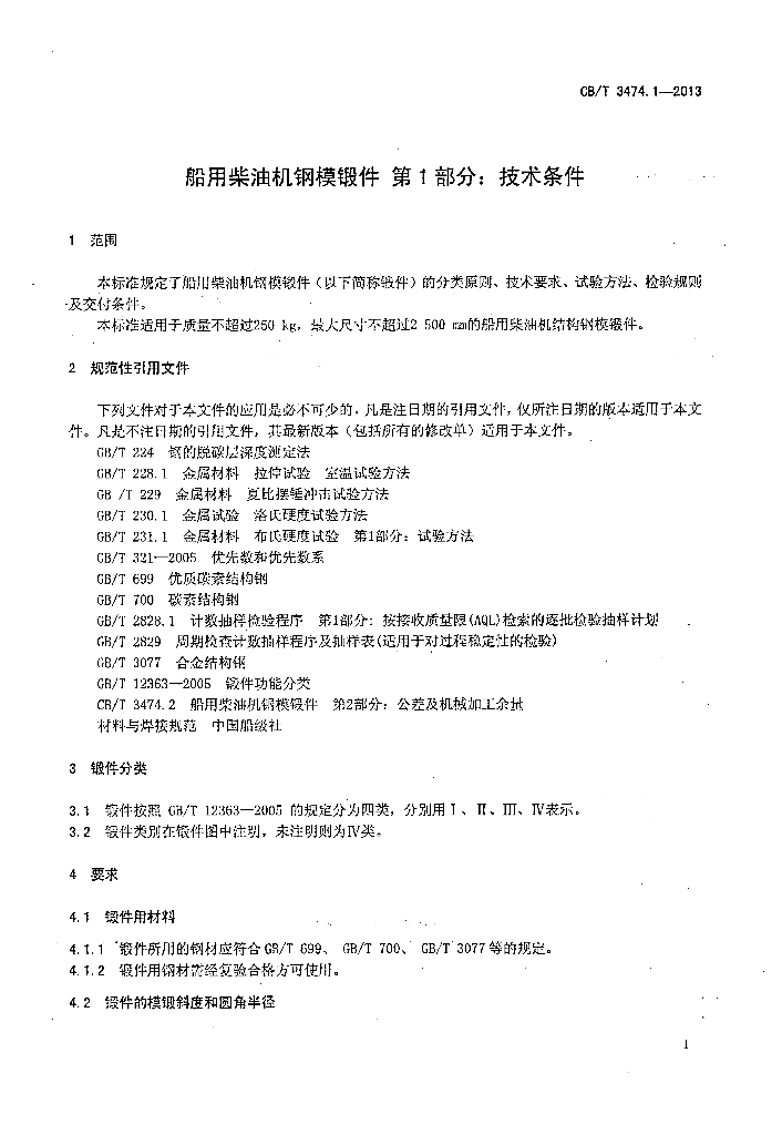 CB/T 3474.1-2013 船用主辅机钢模锻件 第1部分:技术条件
