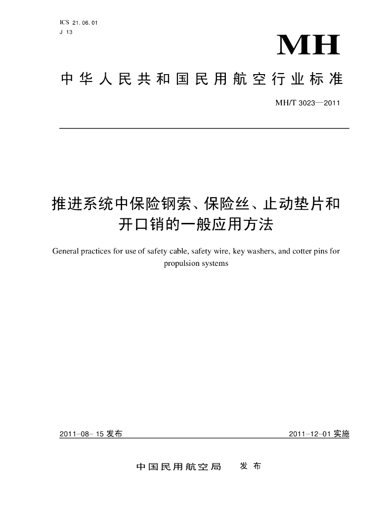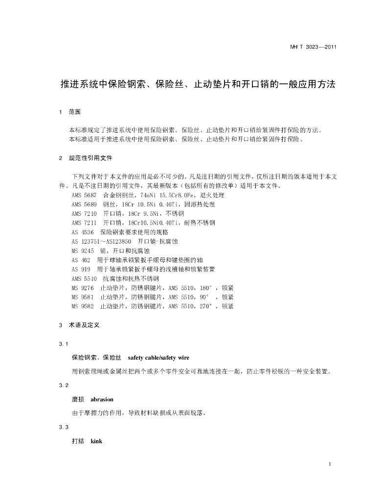 MH/T 3023-2011 推进系统中保险钢索、保险丝、止动垫片和开口销的一般应用方法
