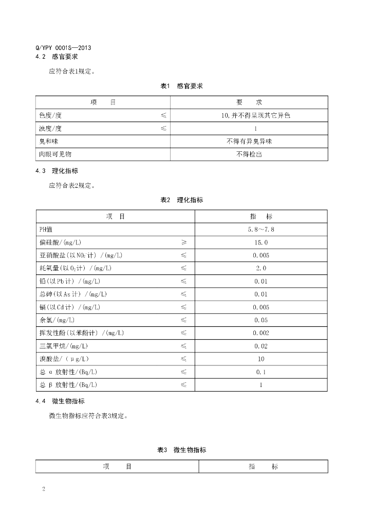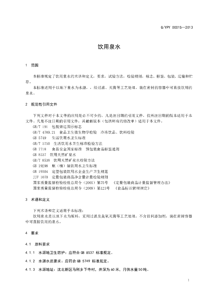 Q/YPY 0001S-2013 沈阳一品源饮品有限公司 饮用泉水