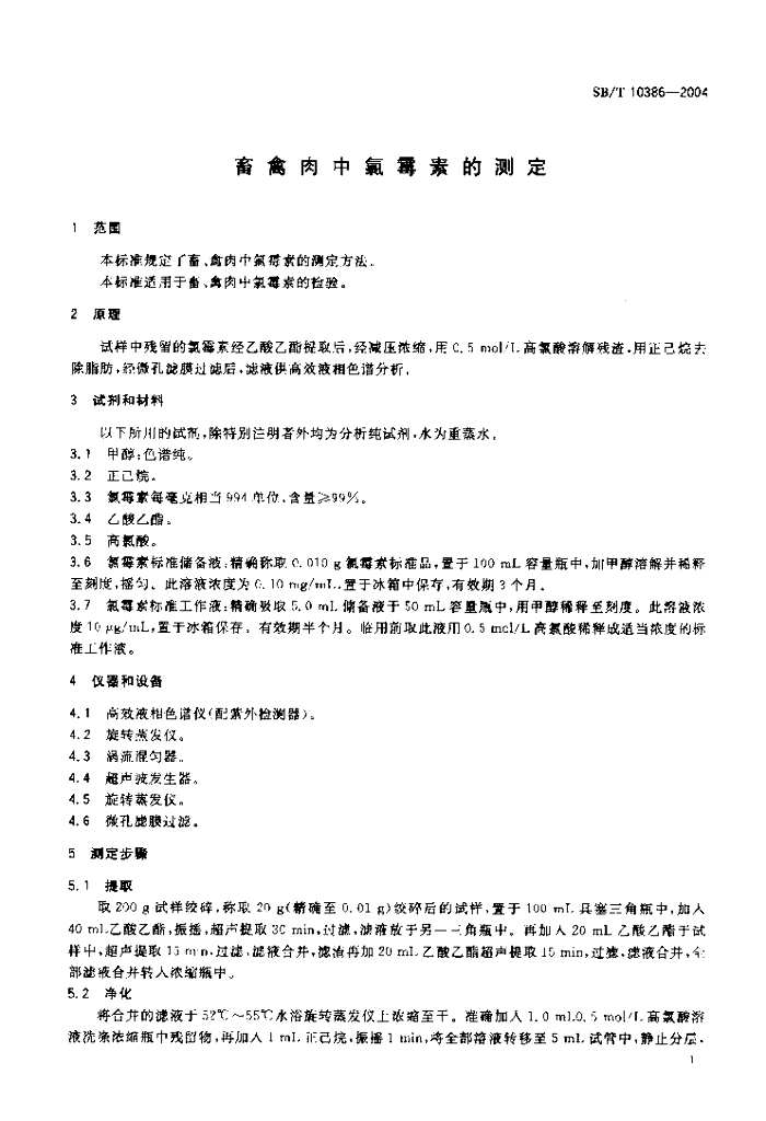 SB/T 10386-2004 畜禽肉中氯霉素的测定