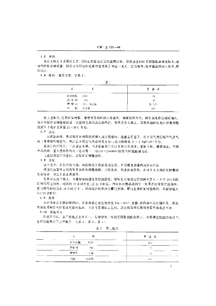 CB/Z 321-1981 尾轴管及尾轴承环氧树脂定位