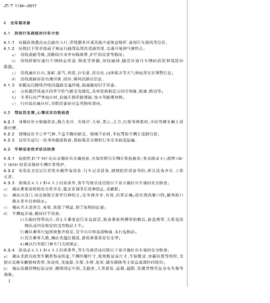 JT/T 1134-2017 道路客货运输驾驶员行车操作规范