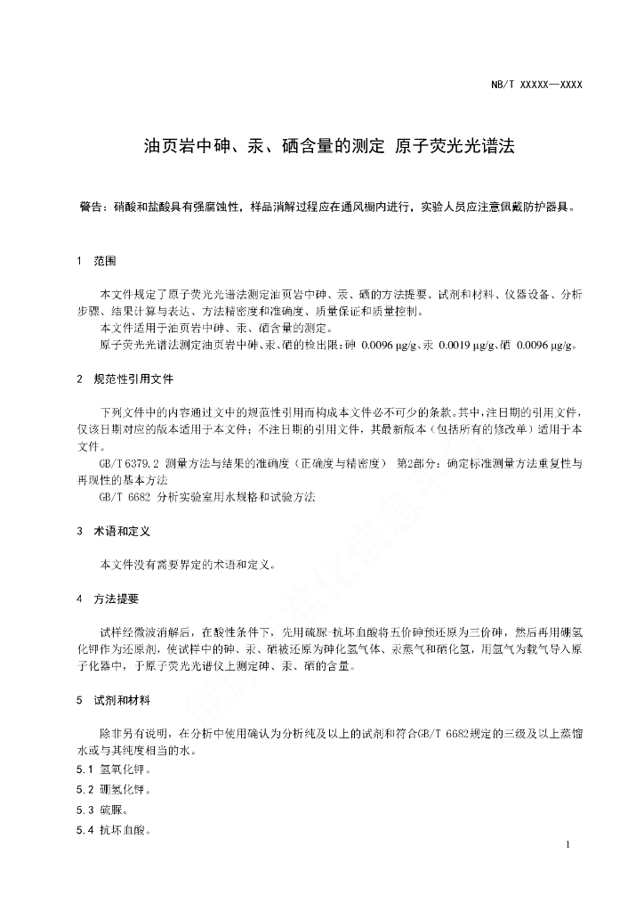 NB/T 11264-2023 油页岩中砷、汞、硒含量的测定 原子荧光光谱法