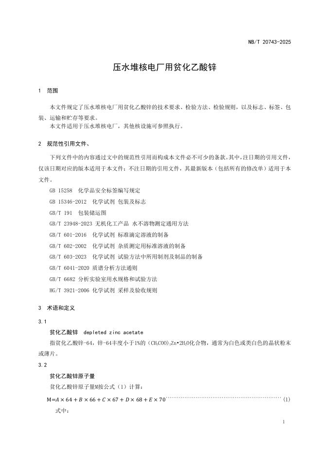 NB/T 20743-2025 压水堆核电厂用贫化乙酸锌