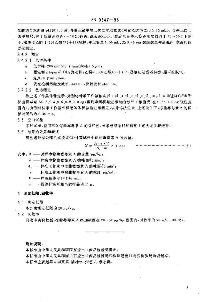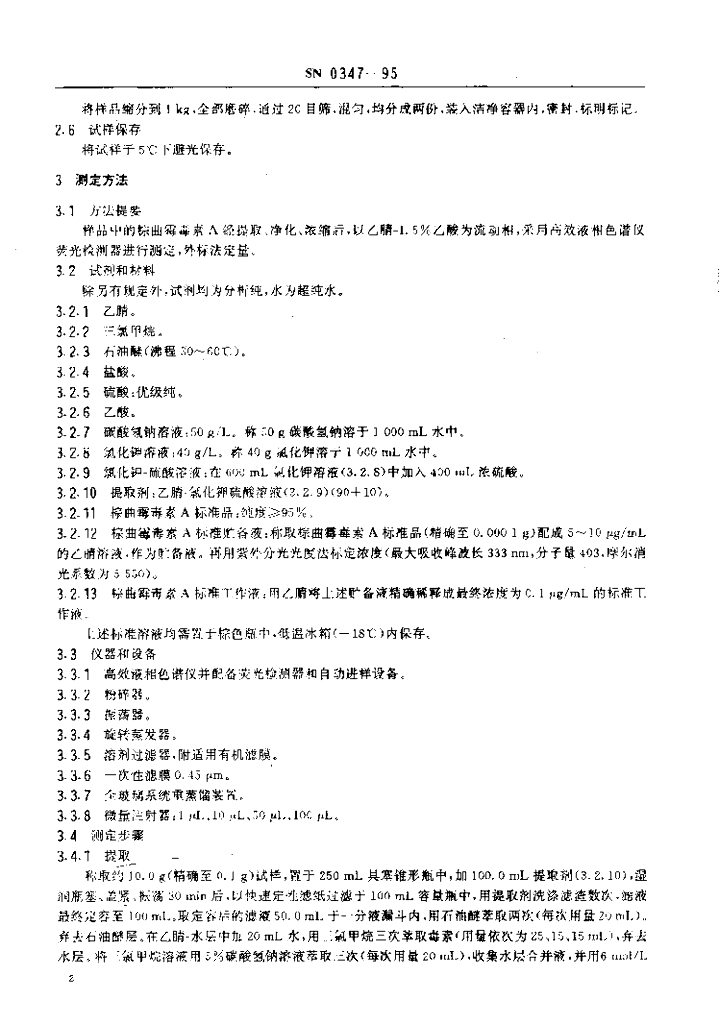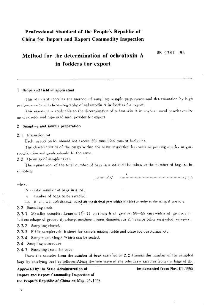 SN 0347-1995 出口饲料中棕曲霉毒素A的检验方法