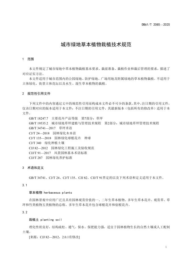 DB61/T 2085-2025 城市绿地草本植物栽植技术规范