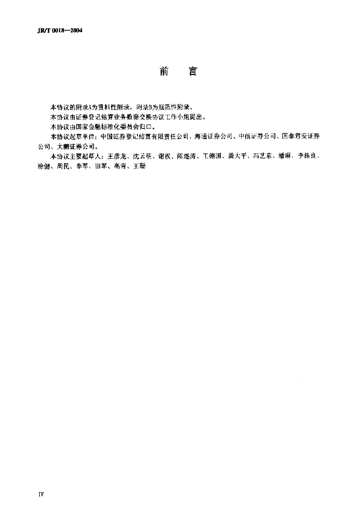 JR/T 0018-2004 证券登记结算业务数据交换协议