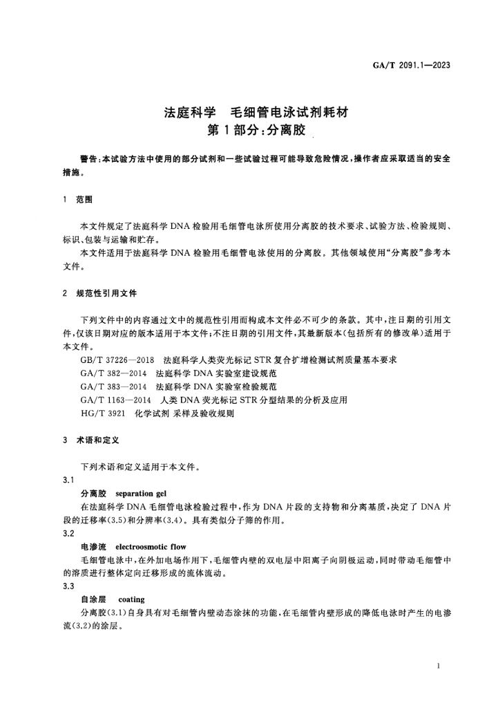 GA/T 2091.1-2023 法庭科学 毛细管电泳试剂耗材 第1部分:分离胶