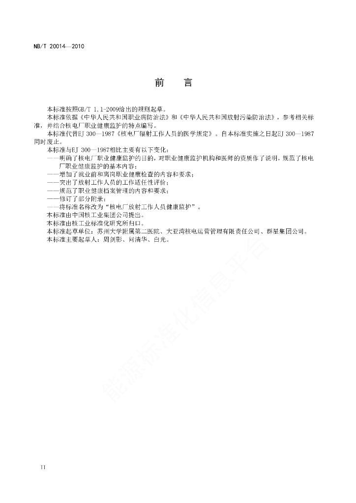 NB/T 20014-2010 核电厂放射工作人员健康监护