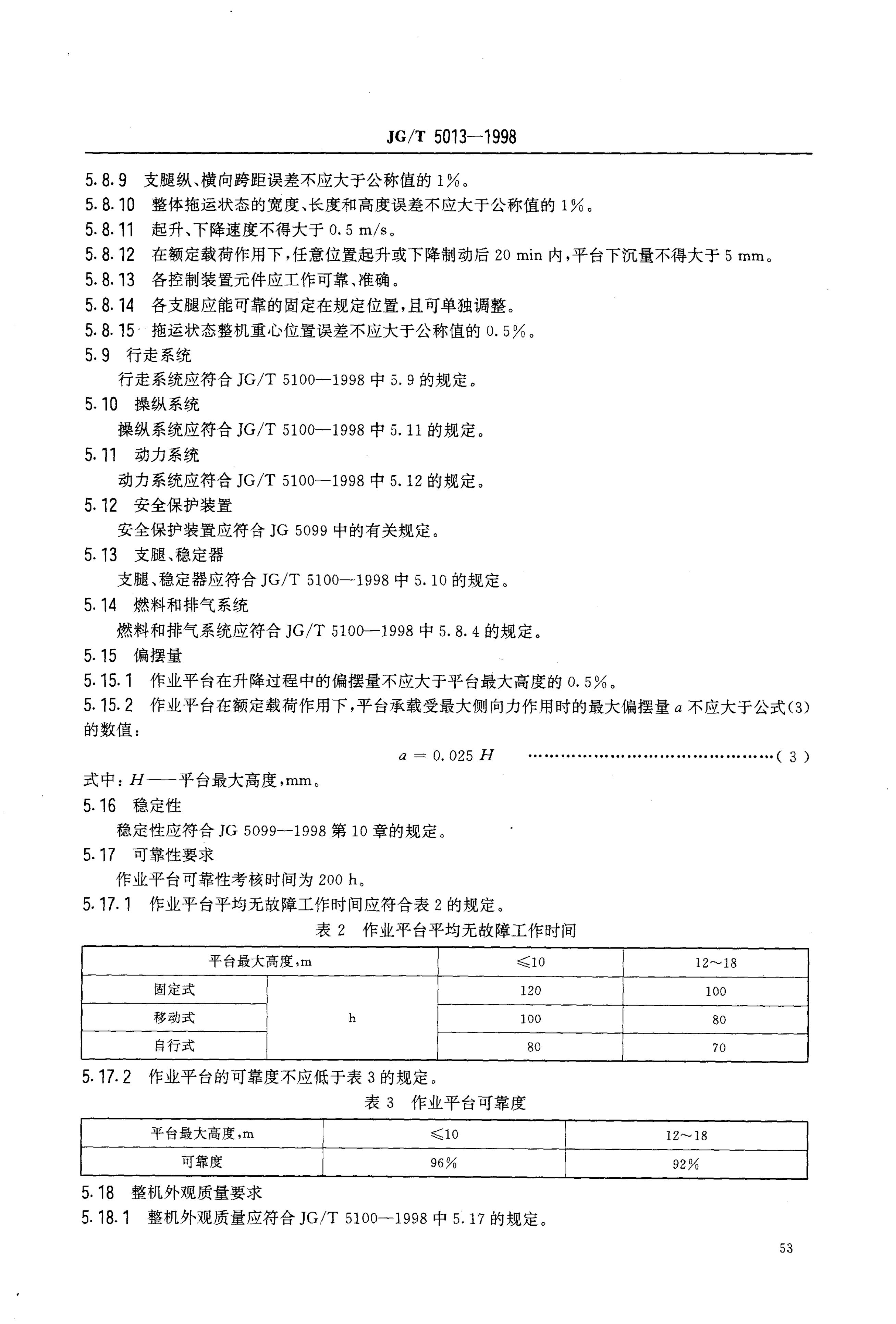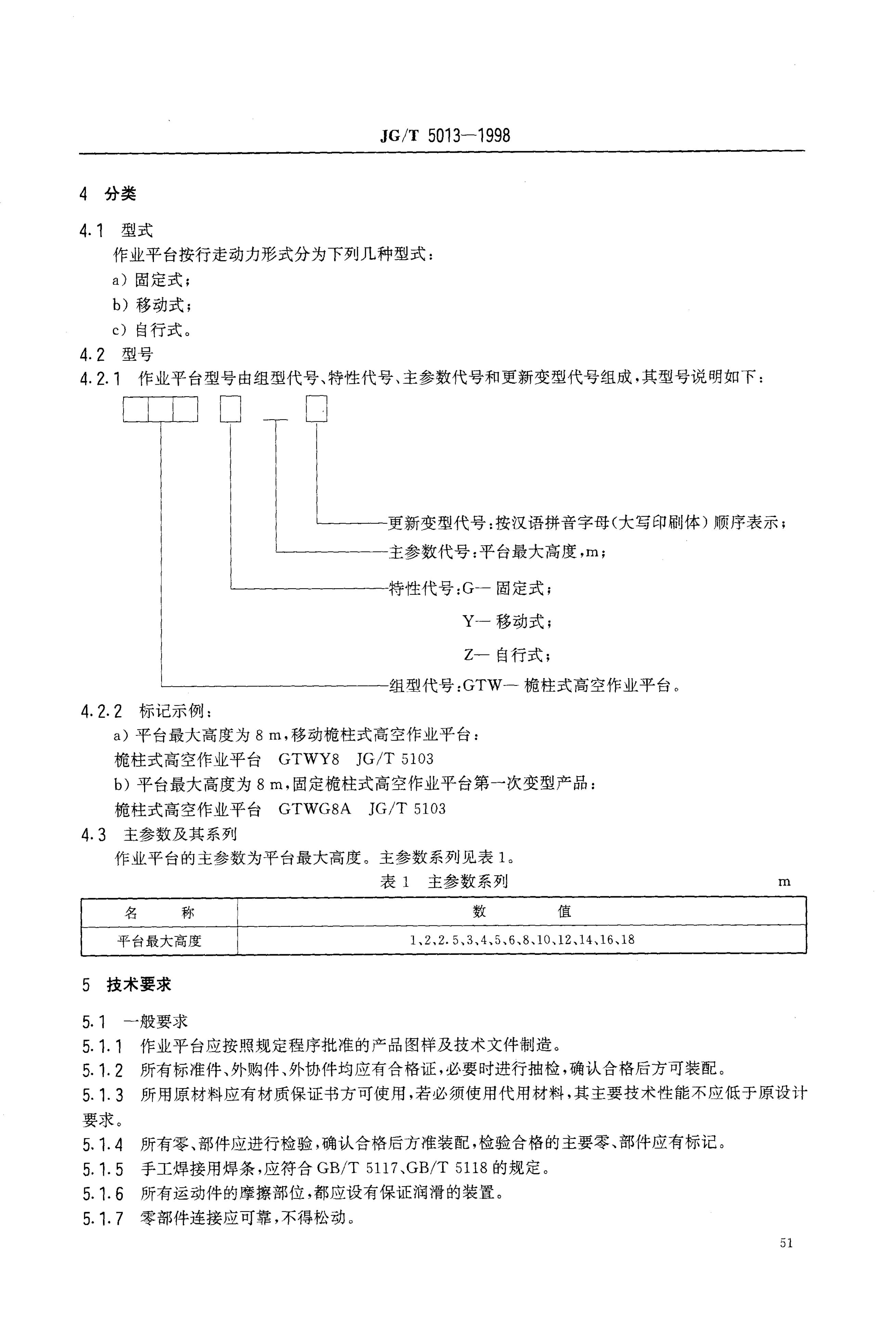 JG/T 5103-1998 桅柱式高空作业平台