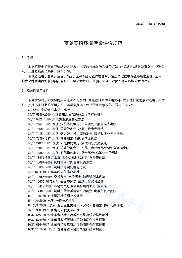 DB37/T 1599-2010 畜禽养殖环境污染评价规范