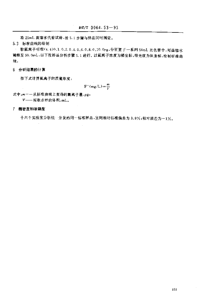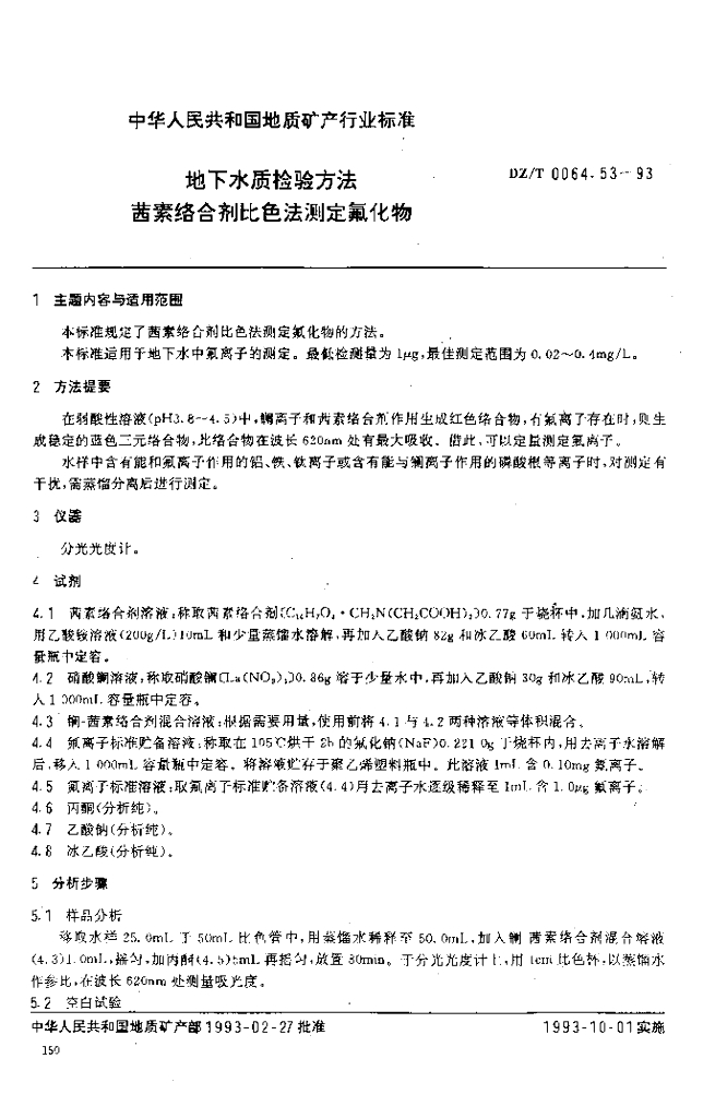 DZ/T 0064.53-1993 地下水质检验方法 茜素络合剂比色法测定氟化物