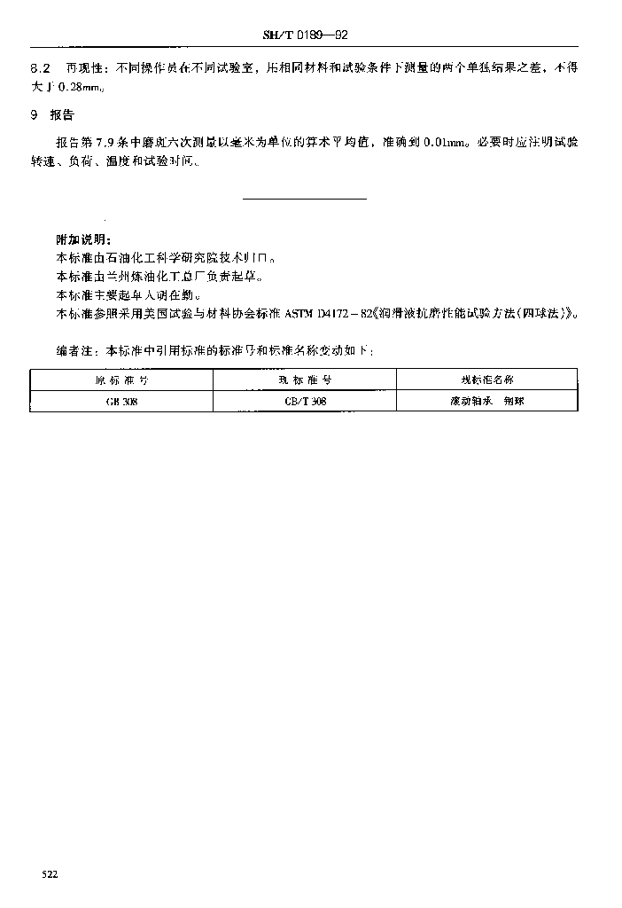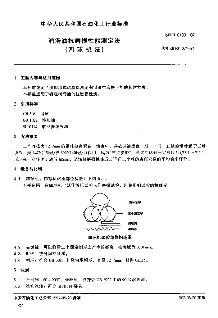 SH/T 0189-1992 润滑油抗磨损性能测定法(四球机法)