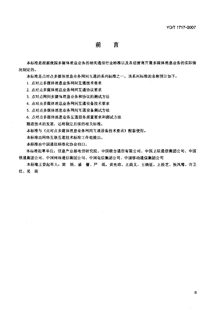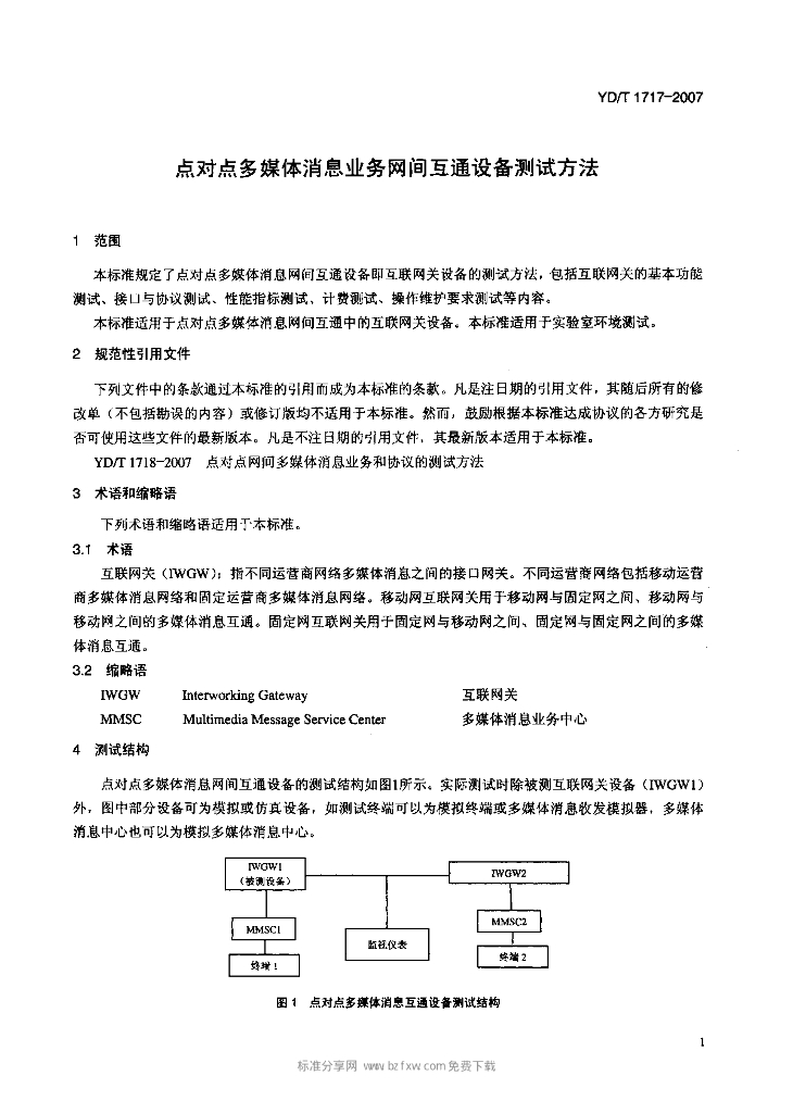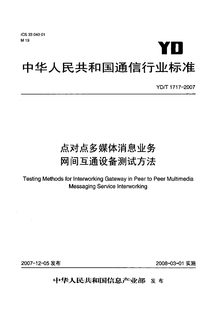 YD/T 1717-2007 点对点多媒体消息业务网间互通设备测试方法