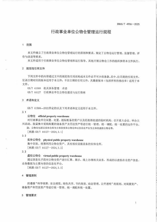 DB65/T 4906-2025 行政事业单位公物仓管理运行规程