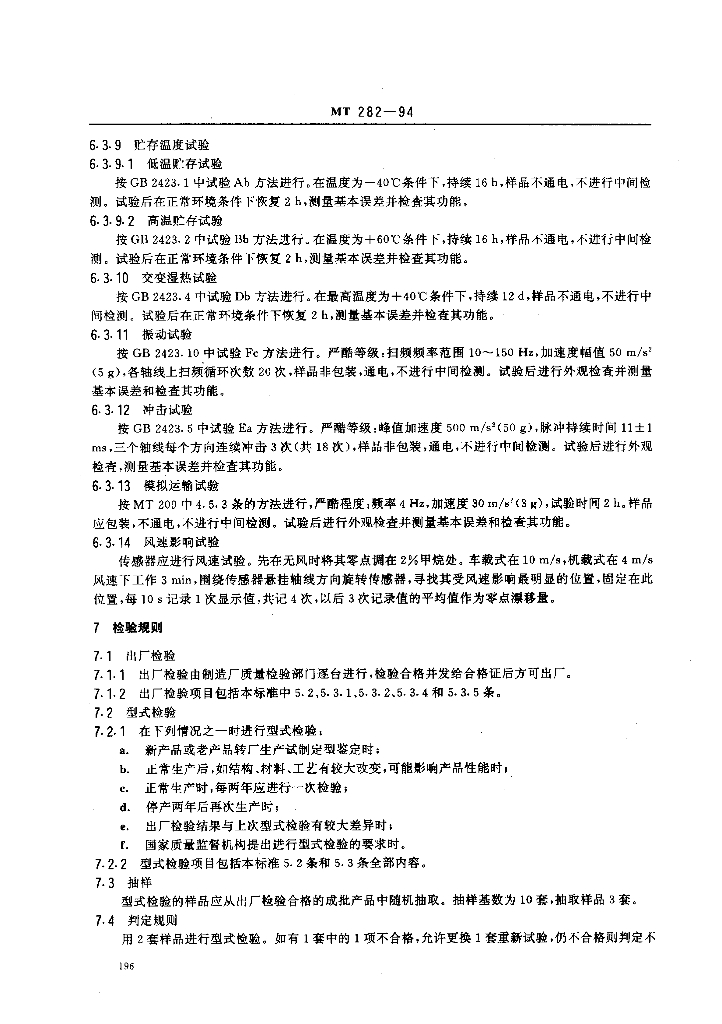 MT 282-1994 煤矿用移动式甲烷断电仪通用技术条件
