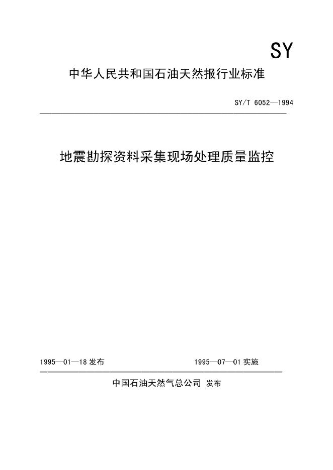 SY/T 6052-1994 地震勘探资料采集现场处理质量监控
