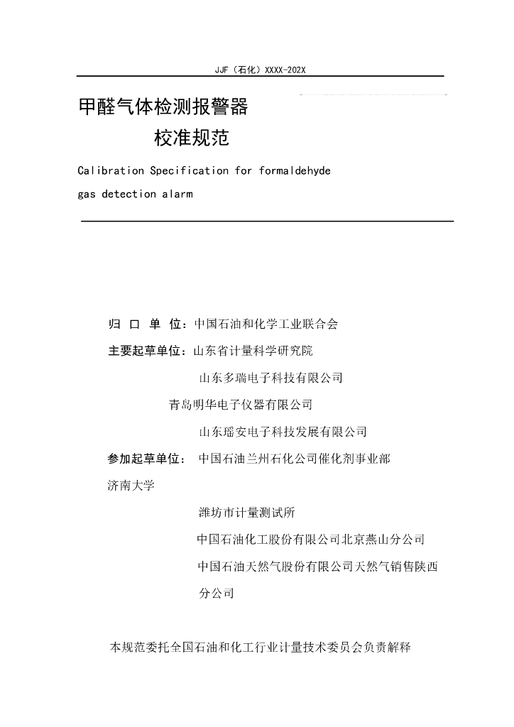 JJF(石化)100-2023 甲醛气体检测报警器校准规范(报批稿)