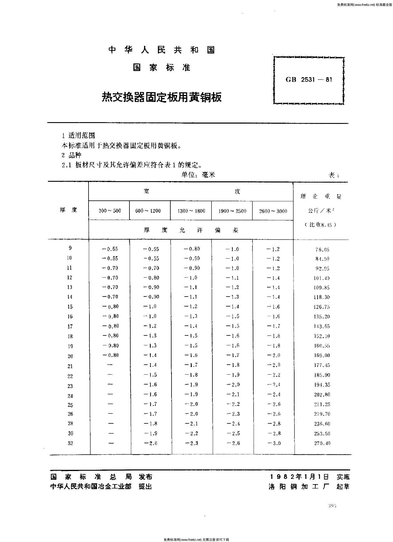 GB/T 2531-1981 热交换器固定板用黄铜板