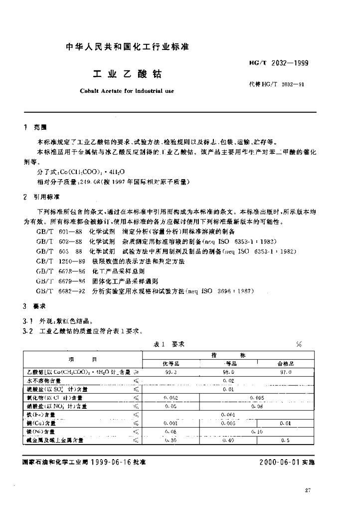 HG/T 2032-1999 工业乙酸钴