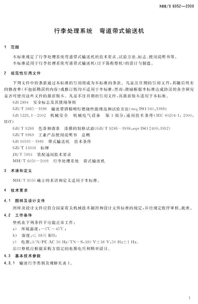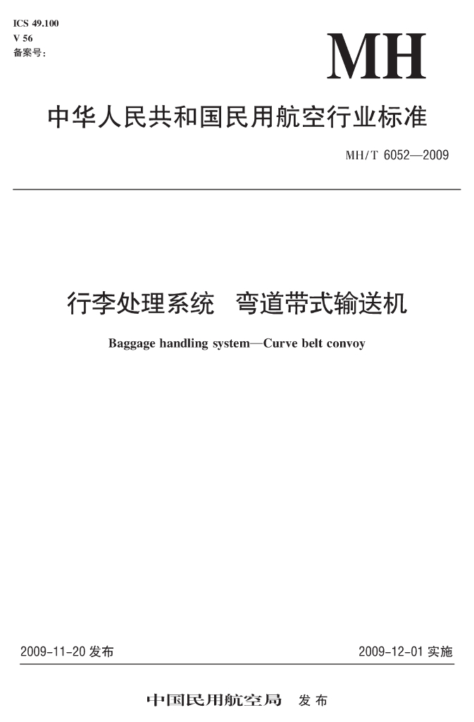MH/T 6052-2009 行李处理系统 弯道带式输送机