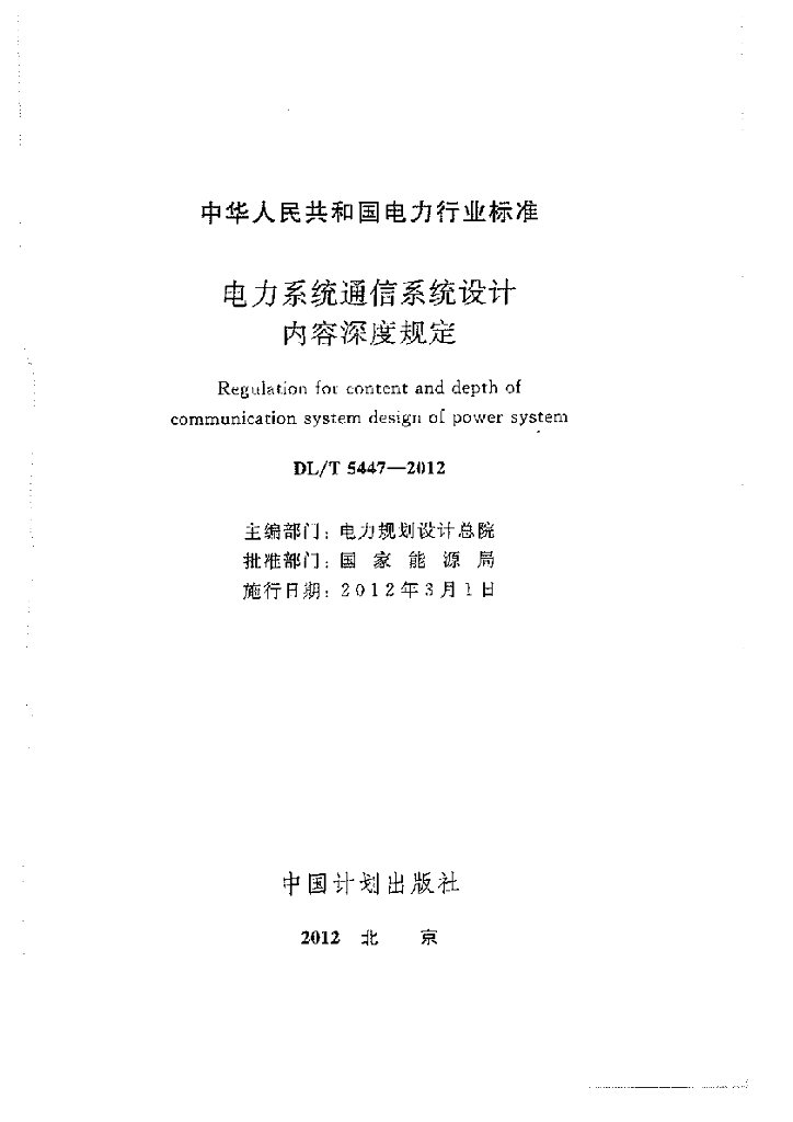DL/T 5447-2012 电力系统通信系统设计内容深度规定