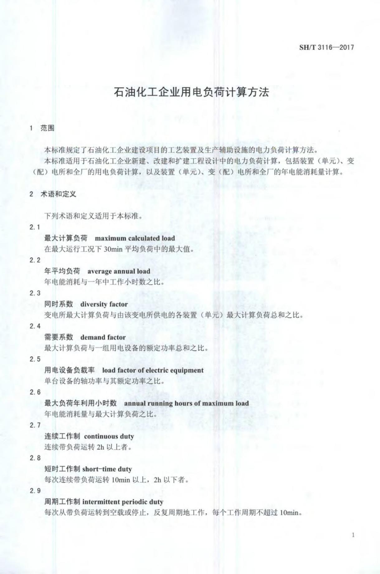 SH/T 3116-2017 石油化工企业用电负荷计算方法
