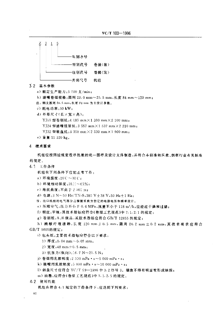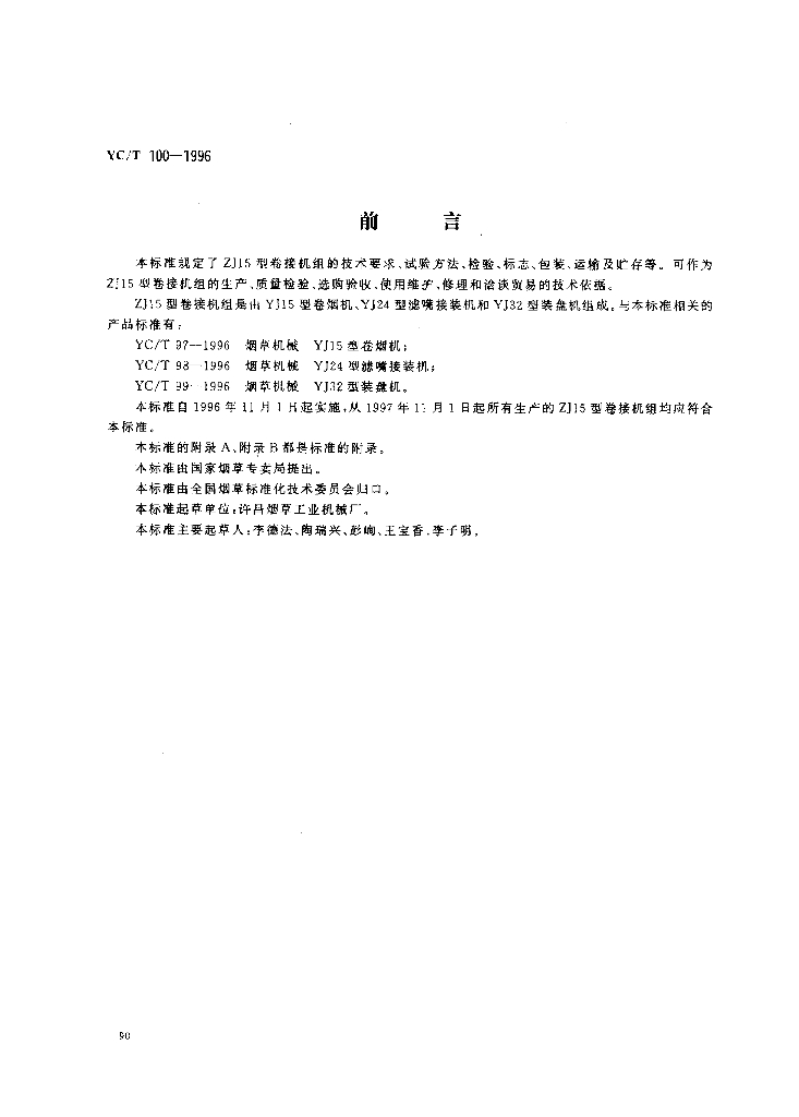 YC/T 100-1996 烟草机械 ZJ15型卷接机组