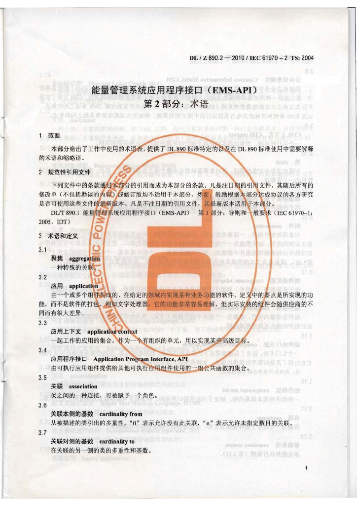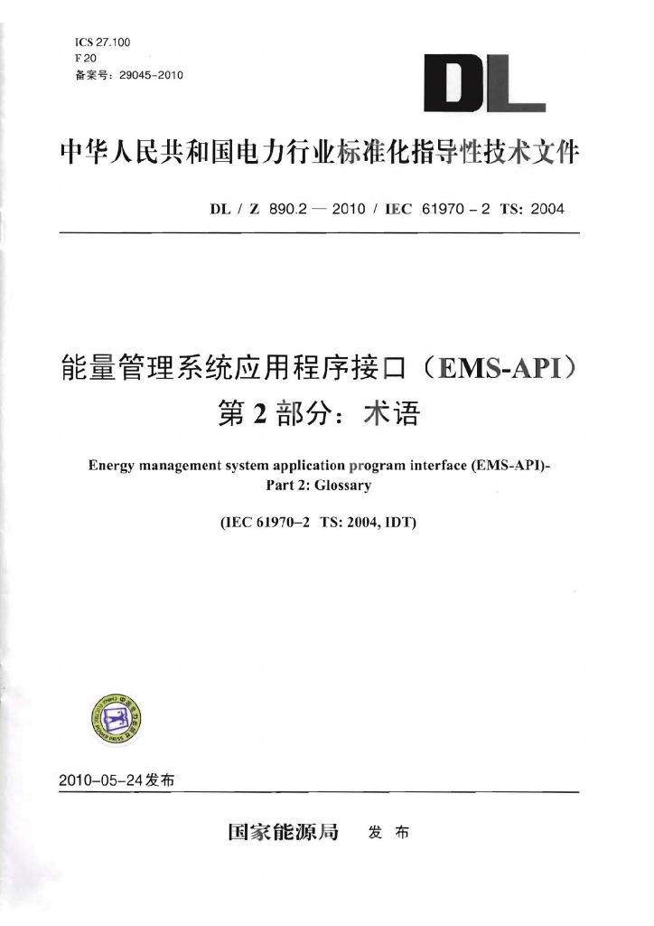 DL/Z 890.2-2010 能量管理系统应用程序接口(EMS-API) 第2部分:术语