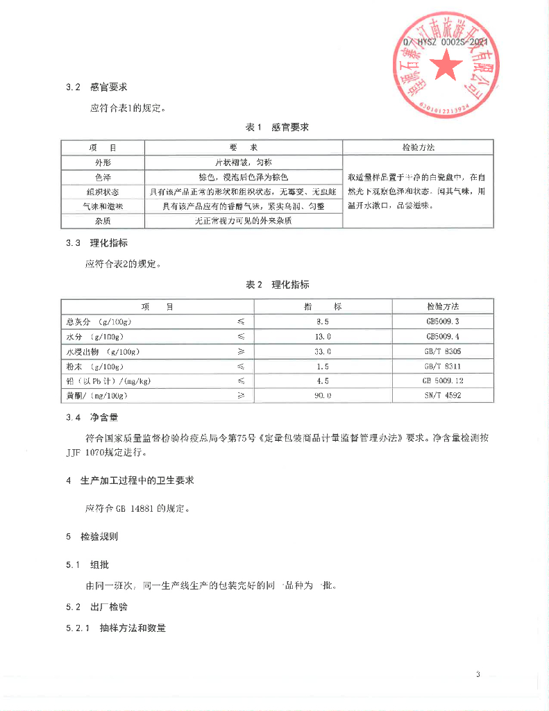 Q/HYSZ 0002S-2021 金露梅茶
