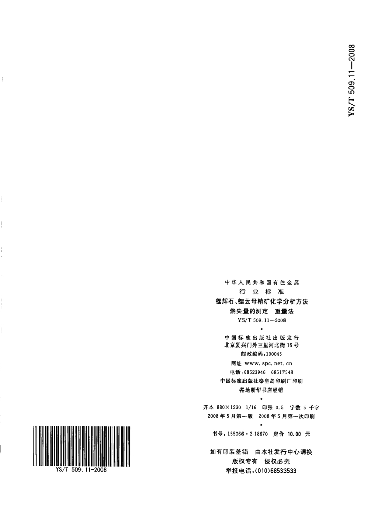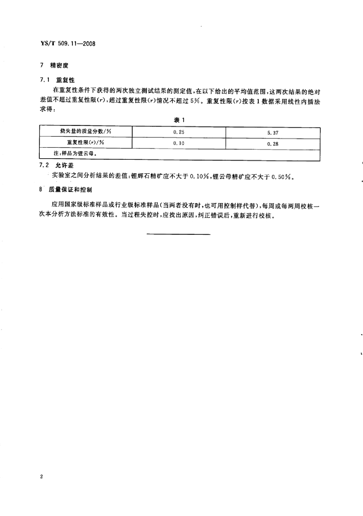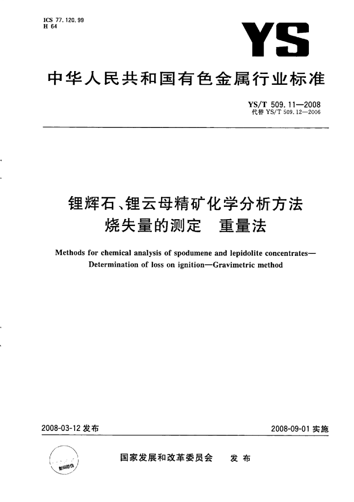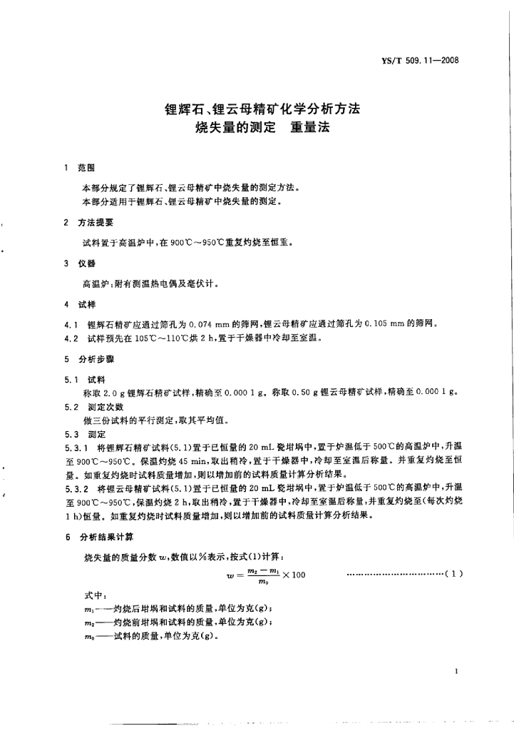 YS/T 509.11-2008 锂辉石、锂云母精矿化学分析方法烧失量的测定重量法