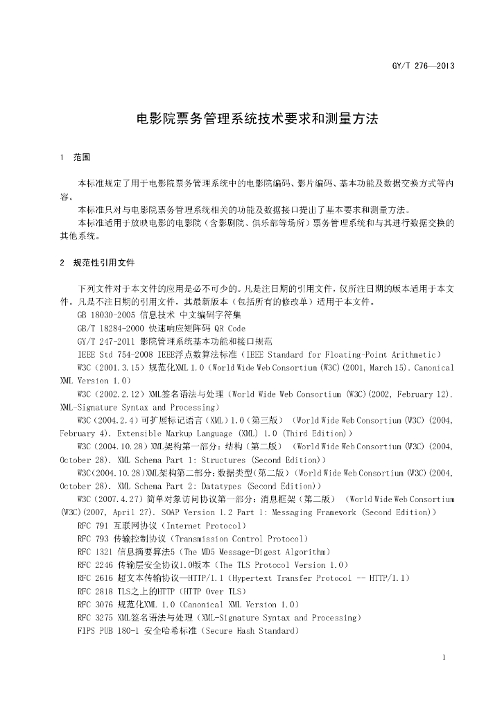 GY/T 276-2013 电影院票务管理系统技术要求和测量方法