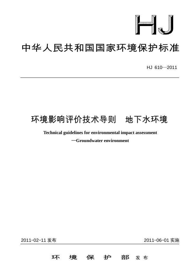 HJ 610-2011 环境影响评价技术导则 地下水环境