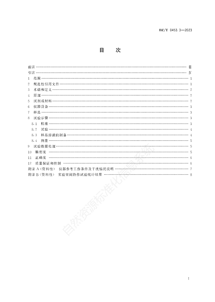 DZ/T 0453.3-2023 铌钽矿石化学分析方法 第3部分:铌、钽、铁、锰和钨含量的测定 酸溶-电感耦合等离子体原子发射光谱法