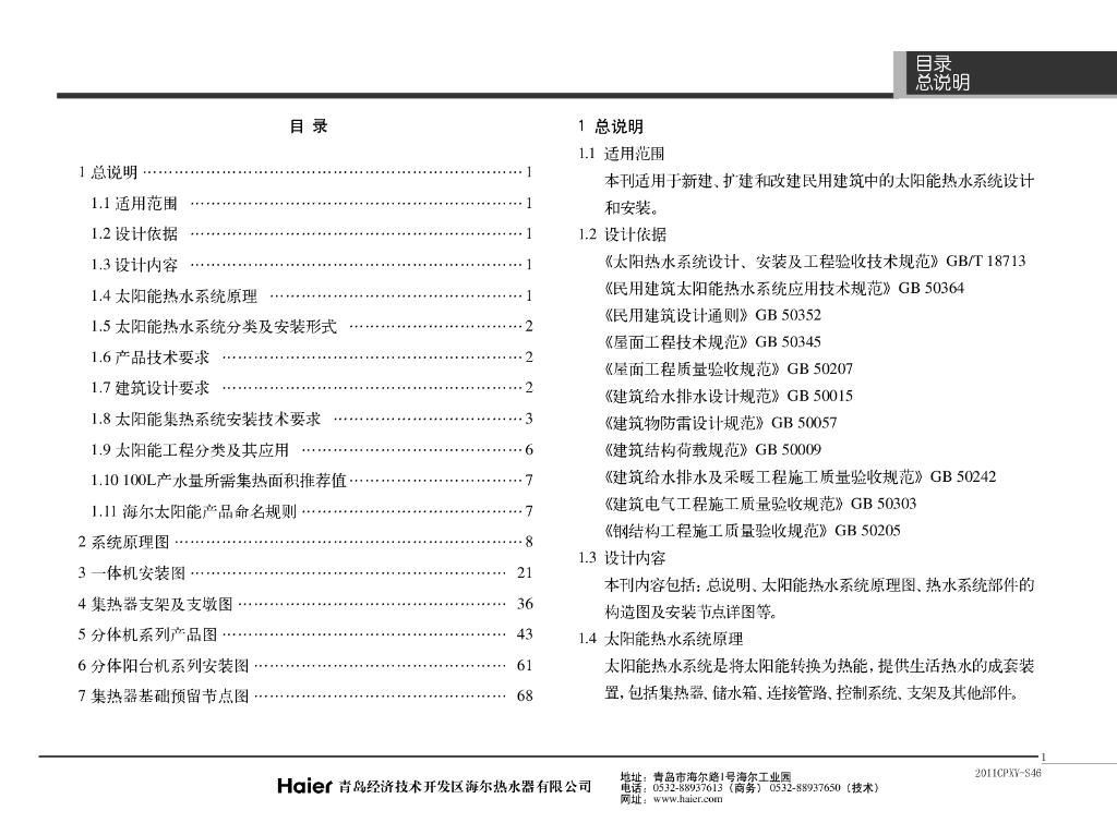2011CPXY-S46 海尔太阳能热水系统选用与安装图集