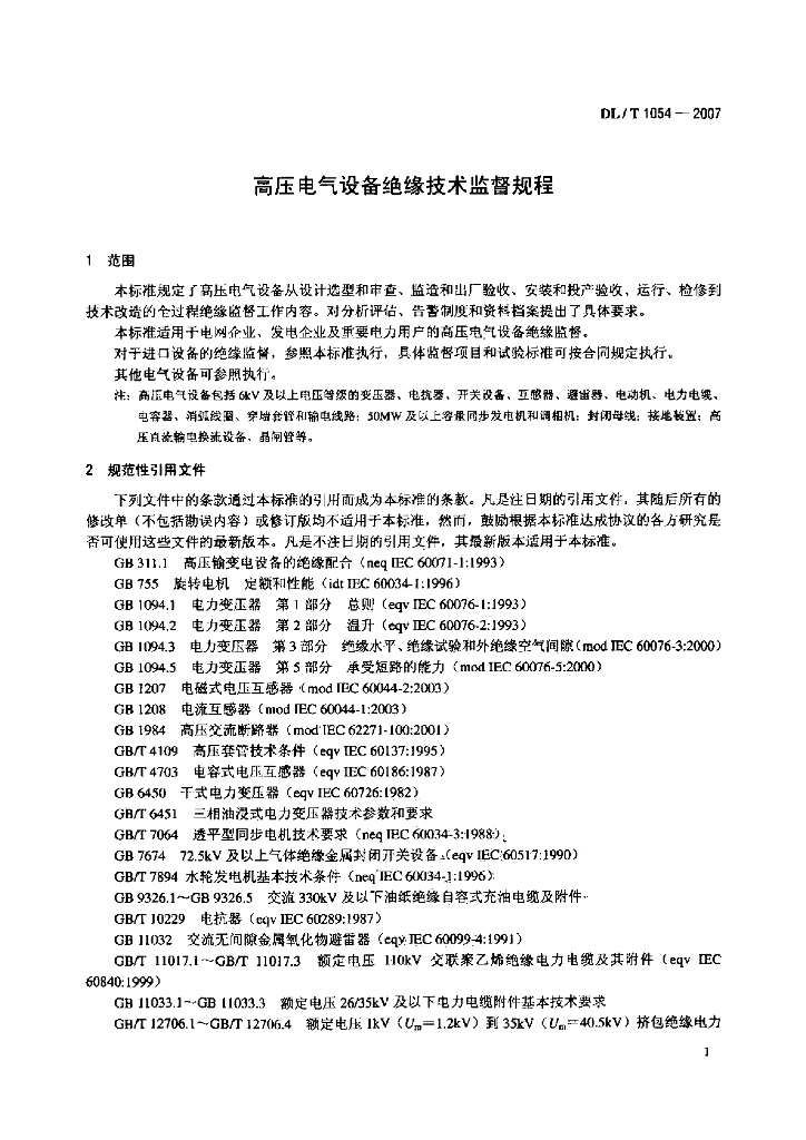DL/T 1054-2007 高压电气设备绝缘技术监督规程