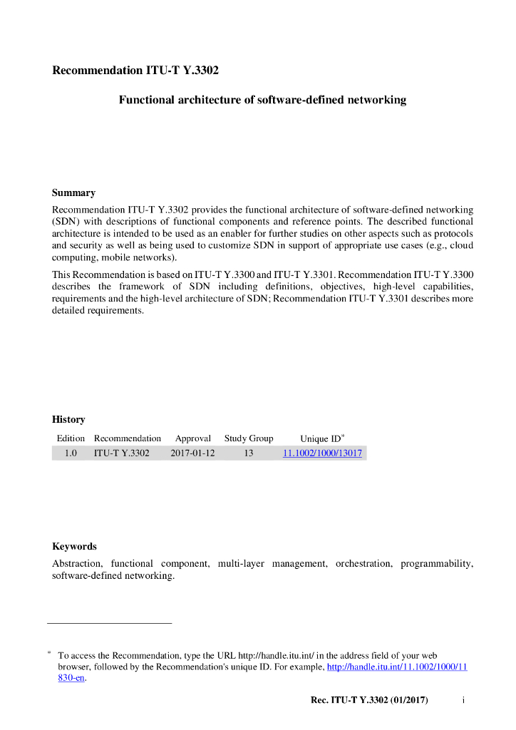 ITU-T Y.3302-2017 软件定义网络的功能架构