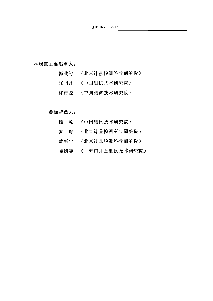 郭洪涛(北京计量检测科学研究院)、张园月(中国测试技术研究院)、许诗朦(中国测试技术研究院)、杨乾(中国测试技术研究院)、罗琛(北京计量检测科学研究院)、黄新生(北京计量检测科学研究院)、滕婧静(上海市计量测试技术研究院)