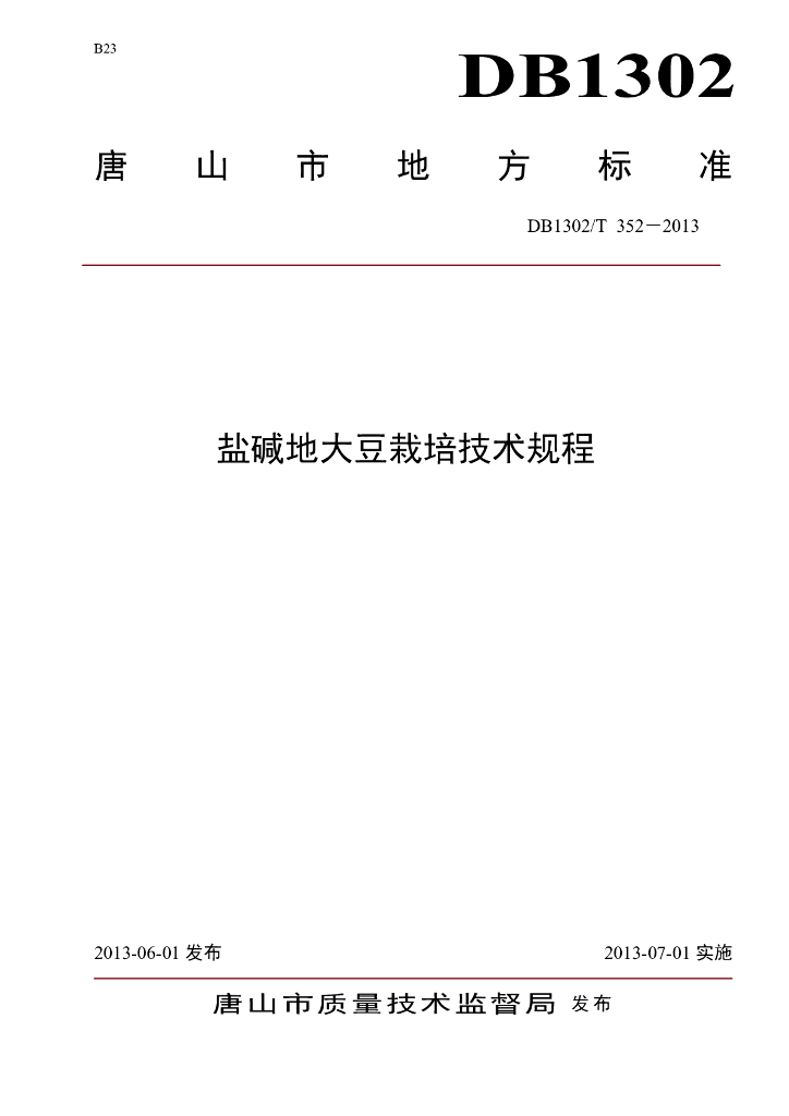 DB1302/T 352-2013 盐碱地大豆栽培技术规程