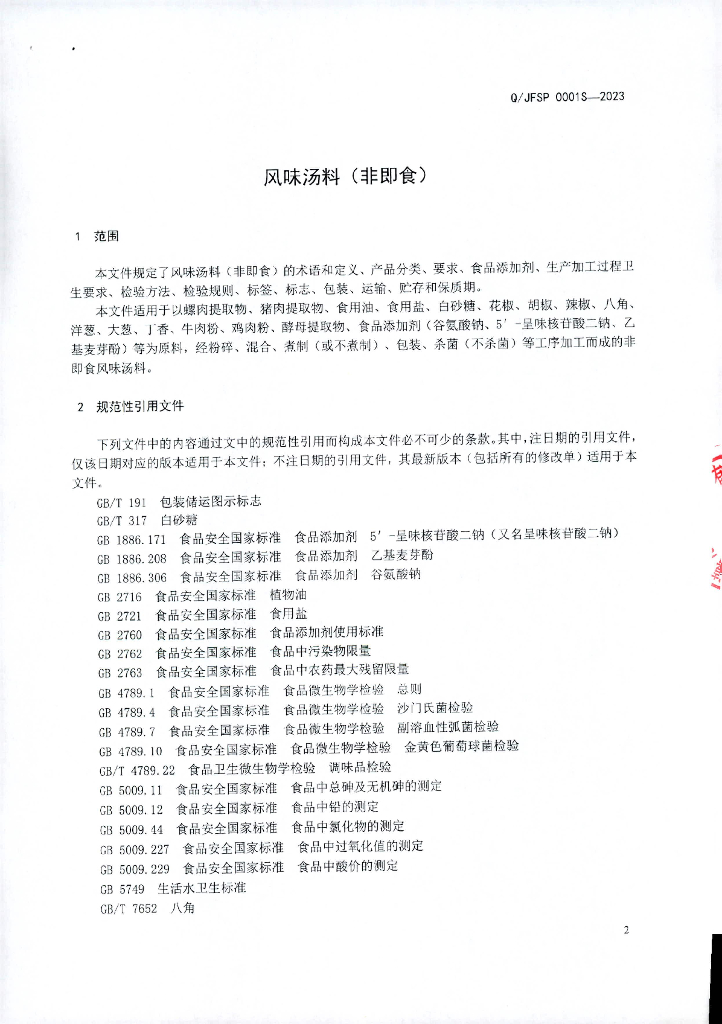 Q/XJSP 0002S-2023 风味汤料(非即食)