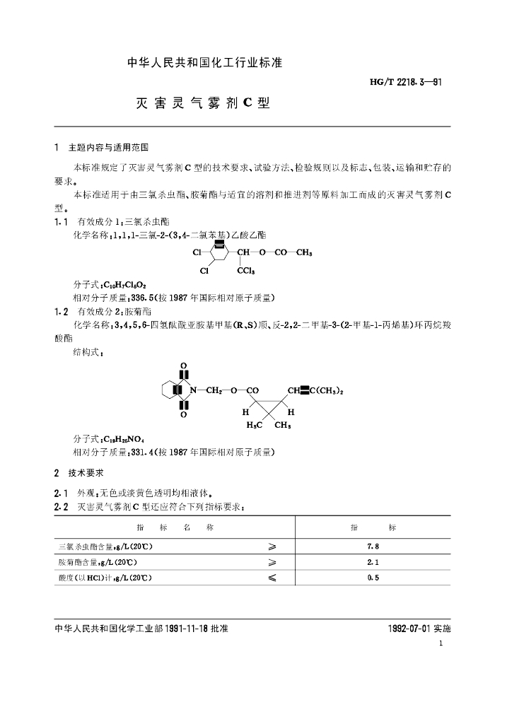 HG/T 2218.3-1991 灭害灵气雾剂C型