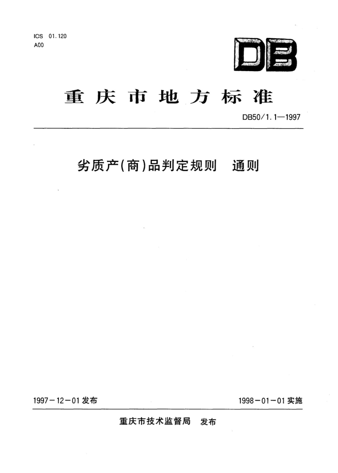 DB50/ 1.1-1997 劣质产商品判定规则 通则