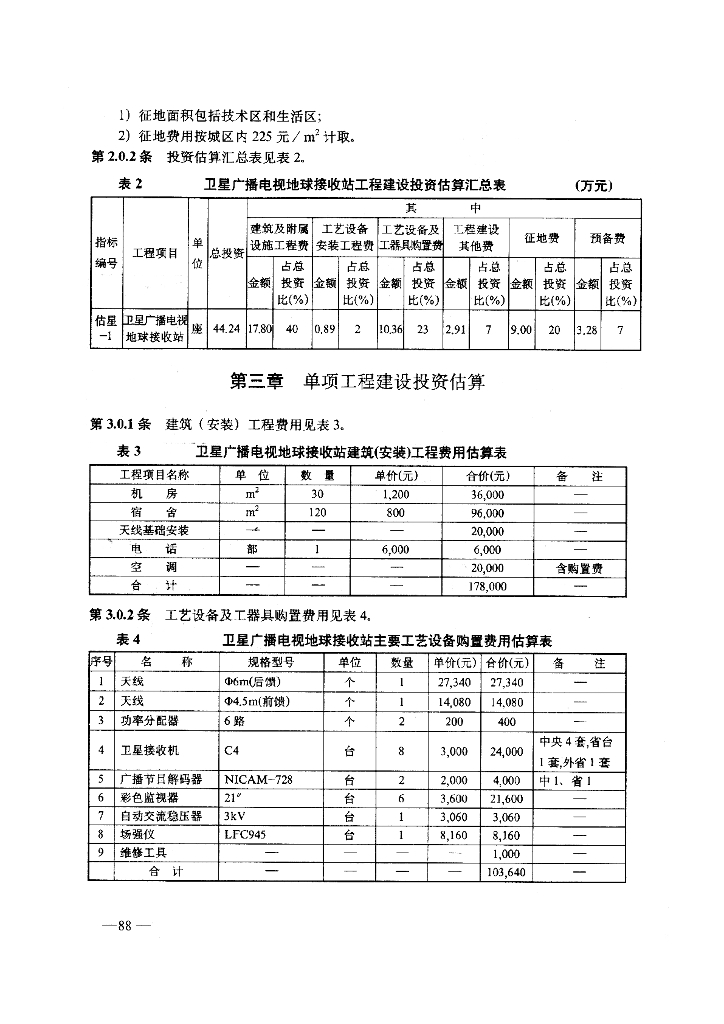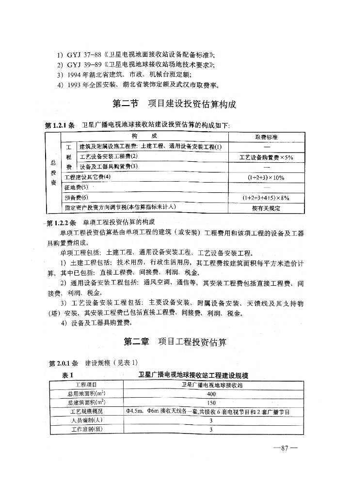 GY 5208-1995 卫星广播电视地球接收站工程建设投资估算指标