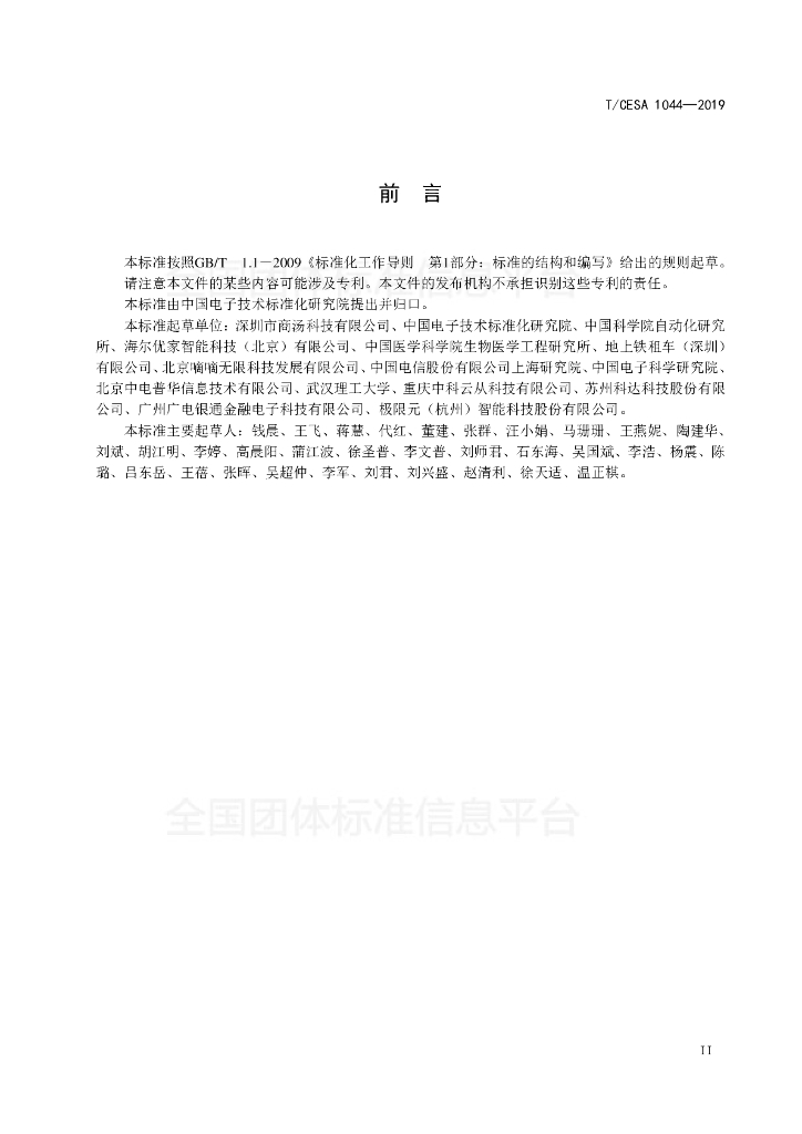 深圳市商汤科技有限公司、中国电子技术标准化研究院、中国科学院自动化研究所、海尔优家智能科技(北京)有限公司、中国医学科学院生物医学工程研究所、地上铁租车(深圳)有限公司、北京嘀嘀无限科技发展有限公司、中国电信股份有限公司上海研究院、中国电子科学研究院、北京中电普华信息技术有限公司、武汉理工大学、重庆中科云从科技有限公司、苏州科达科技股份有限公司、广州广电银通金融电子科技有限公司、极限元(杭州)智能科技股份有限公司